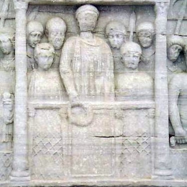 Theodosius offers a laurel wreath to the victor, on the base of the obelisk in the Hippodrome (Istanbul). Photo by Jfruh.. Creative Commons Attribution-Share Alike 3.0 Unported license.